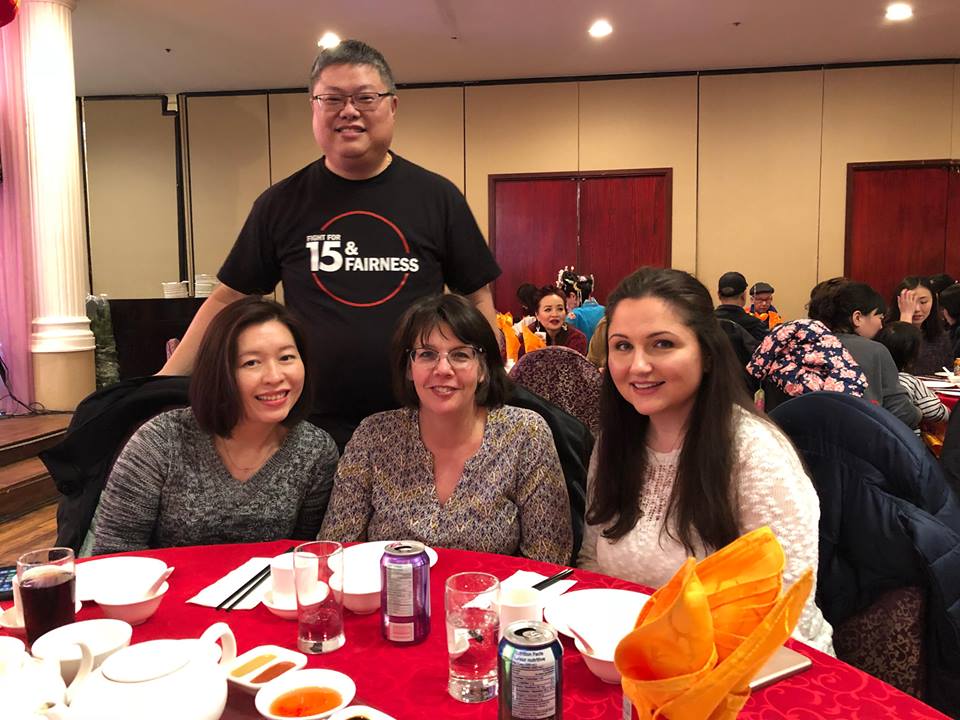 迎接農曆戊戌狗年的來臨,在多倫多及約克區勞工議會再次大力支持下,華工網絡於二月十日星期六晚上六時正假世紀皇宮大酒樓舉行新春聯歡晚宴,接近300名成員與嘉賓出席。當晚我們慶祝了勞工法例改革,展望未來市選及省選,紀念我們摯愛的姐妹Helen Liu,進行<我在職場現場訪問>及介紹華工網絡委員會工作及未來發展。